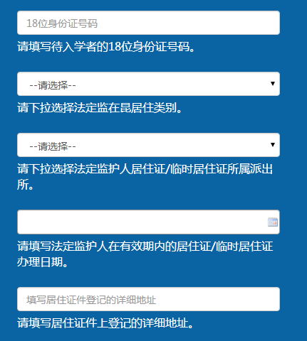 请下拉选择法定监在昆居住类别。