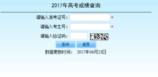 今天是2017年06月23日 星期五 北京教育考试院首页 | 网上综合查询系统 | 高考成绩查询