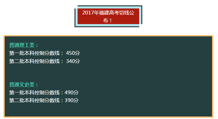 福建高考分数线理工类本一批450分 学习吧(24-01-22) 今年福建高招切线出炉了! 理工类本一批450分 文史类本一批490分 具体如下: 2017年福建高考切线公布! 普通理工类: 第一批本科控制分数线: 450分 第二批本科控制分数线: 340分 普通文史类: 第一批本科控制分数线:490分 第二批本科控制分数线:390分