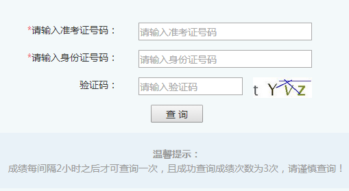 成绩每间隔2小时之后才可查询一次,且成功查询成绩次数为3次,请谨慎查询!
