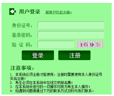 4、第一次使用本系统进行报名时,请先注册,同一身份证号只允许注册一次。