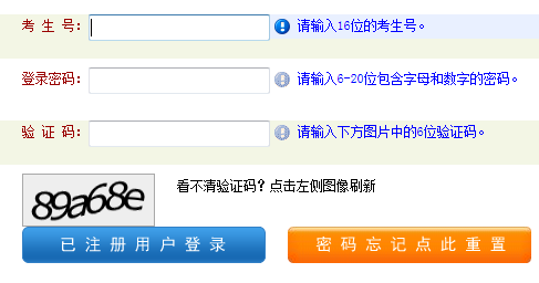 6.已注册考生输入16位考生号和密码登录此服务平台