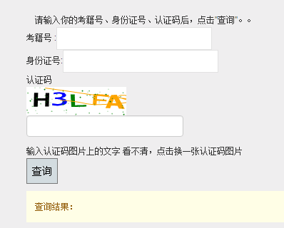 请输入你的考籍号、身份证号、认证码后,点击"查询"。。