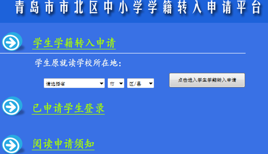 http://111.17.218.44:223/zxsq/青岛市北区中小学学籍转入申请平台