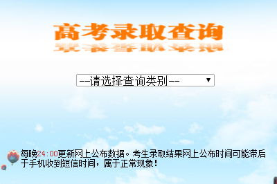 每晚24:00更新网上公布数据。考生录取结果网上公布时间可能滞后于手机收到短信时间,属于正常现象!