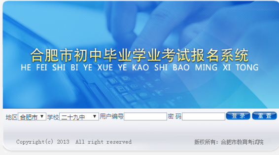 合肥初中学业水平考试报名系统http://zz.hfzk.net.cn/student_enter/loginb