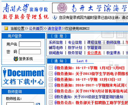 http://222.30.63.15/nkemis/南开大学滨海学院教务处入口