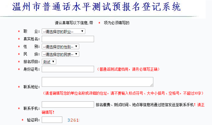 温州市普通话测试预报名系统http://www.wzyywz.com/bmx/index.html