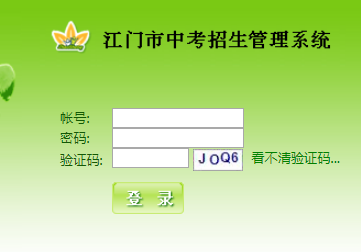http://59.37.160.34:166/江门基础教育信息网学籍管理系统 学习吧(24-01-22) http://59.37.160.34:166/江门基础教育信息网学籍管理系统 http://59.37.160.34/jmzksystem/goin.aspx江门市中考招生报名系统 帐号: 密码: http://www.ajrhws.com/zk/33638/ 验证码: 看不清验证码... 江门市中考招生管理系统 http://59.37.160.34/jmzksystem/goin.aspx