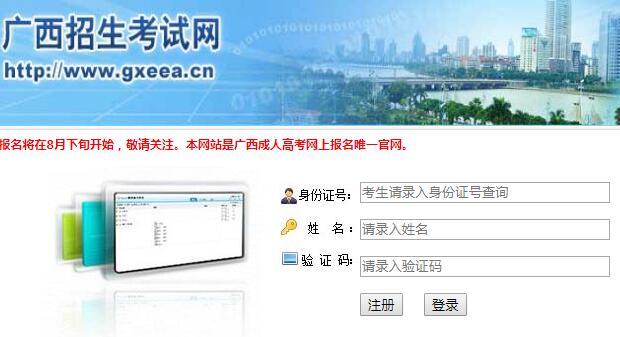 http://cg.gxeea.cn:8668/ckao/index.jsp广西成人高考报名系统 学习吧(24-01-22) http://cg.gxeea.cn:8668/ckao/index.jsp广西成人高考报名系统 广西成人高考报名系统http://cg.gxeea.cn:8668/ckao/考生必须在上述时间内完成个人信息和志愿填报 网上缴费、考区和确认点的选择,否则不能参加现场确认,最终不能参加本年度考试。网上报名系统使用、数据问题等技术支持电话:0771-5337942、5337943。工网上报名期间的作时间:8:00--12:00,15:00--18:00。