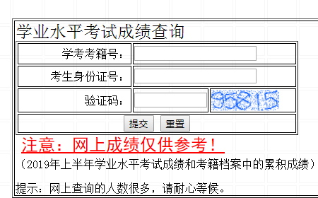 河北省学业水平考试网https://www.hebhk.com/xkcf.asp 学习吧(24-01-22) 河北省学业水平考试网https://www.hebhk.com/xkcf.asp 学业水平考试成绩查询 学考考籍号: 考生身份证号: 验证码: 验证码 提交 重置http://www.ajrhws.com/hebei/38644.html 注意:网上成绩仅供参考! (2019年上半年学业水平考试成绩和考籍档案中的累积成绩) 提示:网上查询的人数很多,请耐心等候。