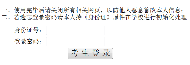 二、若遗忘登录密码请本人持《身份证》原件在学校进行初始化处理。