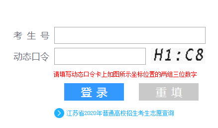 江苏省2020年普通高校招生考生志愿查询1.通过省教育考试院门户网站查询。考生可登录省教育考试院门户网站(www.jseea.cn),点击“2020年高考录取结果查询”,凭考生号和动态口令卡进行查询。