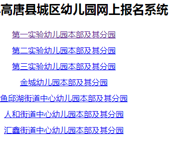 关于幼儿园报名首先需要家长们确认报名哪所幼儿园,再根据提示进入系统报名:高唐县城区幼儿园网上报名系统http://2024gtyey.xxcxzj.com/list.html