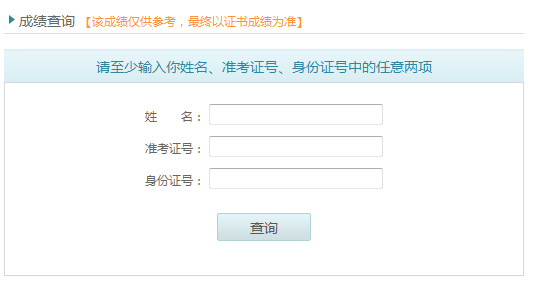 请至少输入你姓名、准考证号、身份证号中的任意两项