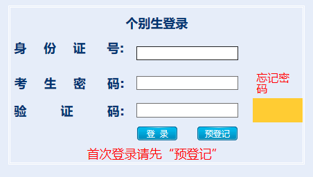 2. 考生首次登陆系统请选择“我要预登记”;已经预登记的考生如需再次登录,请选择“二次登录”。