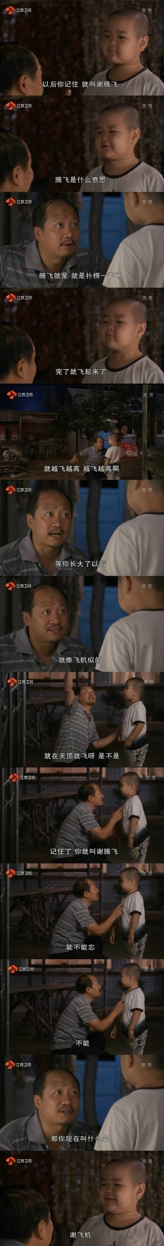谢飞机表情包出处 谢飞机是什么意思 学习吧(24-01-22) 谢飞机本名谢腾飞,是乡村爱情故事电视剧中的一个小孩子角色,近期由于电视剧中的可爱呆萌外表萌翻网友,获得网友取名谢飞机,下图是谢飞机名字的来源桥段。 12