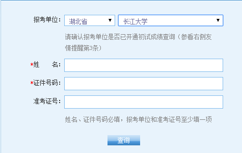 3、若无查询结果,请检查您报考的招生单位是否已开通初试成绩查询功能,即报考单位是否存在于查询条件的“报考单位”下拉列表中有的报考单位。