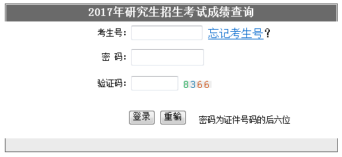 湖南硕士研究生成绩查询www.hneeb.cn/web4/yk_cx_jh.asp 学习吧(24-01-22) 湖南研究生考试成绩将于2月15日以后公布,考生们可以通过官方入口进行查询成绩: 2017年辽宁考研成绩查询入口http://www.hneeb.cn/web4/yk_cx_jh.asp 2月15日起,全国2017年硕士研究生考试成绩将陆续公布,大家可以进入官方考研成绩查询入口进行查询自己的成绩。 2017年研究生招生考试成绩查询 考生号: 忘记考生号? 密 码: 验证码: 密码为证件号码的后六位