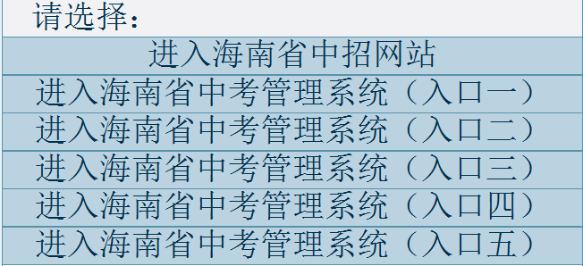 www.zz.hainan.gov.cn海南中考网上报名 学习吧(24-01-22) 海南中考网上报名系统入口www.zz.hainan.gov.cn 请选择: 进入海南省中招网站 进入海南省中考管理系统(入口一) 进入海南省中考管理系统(入口二) 进入海南省中考管理系统(入口三) 进入海南省中考管理系统(入口四) 进入海南省中考管理系统(入口五)